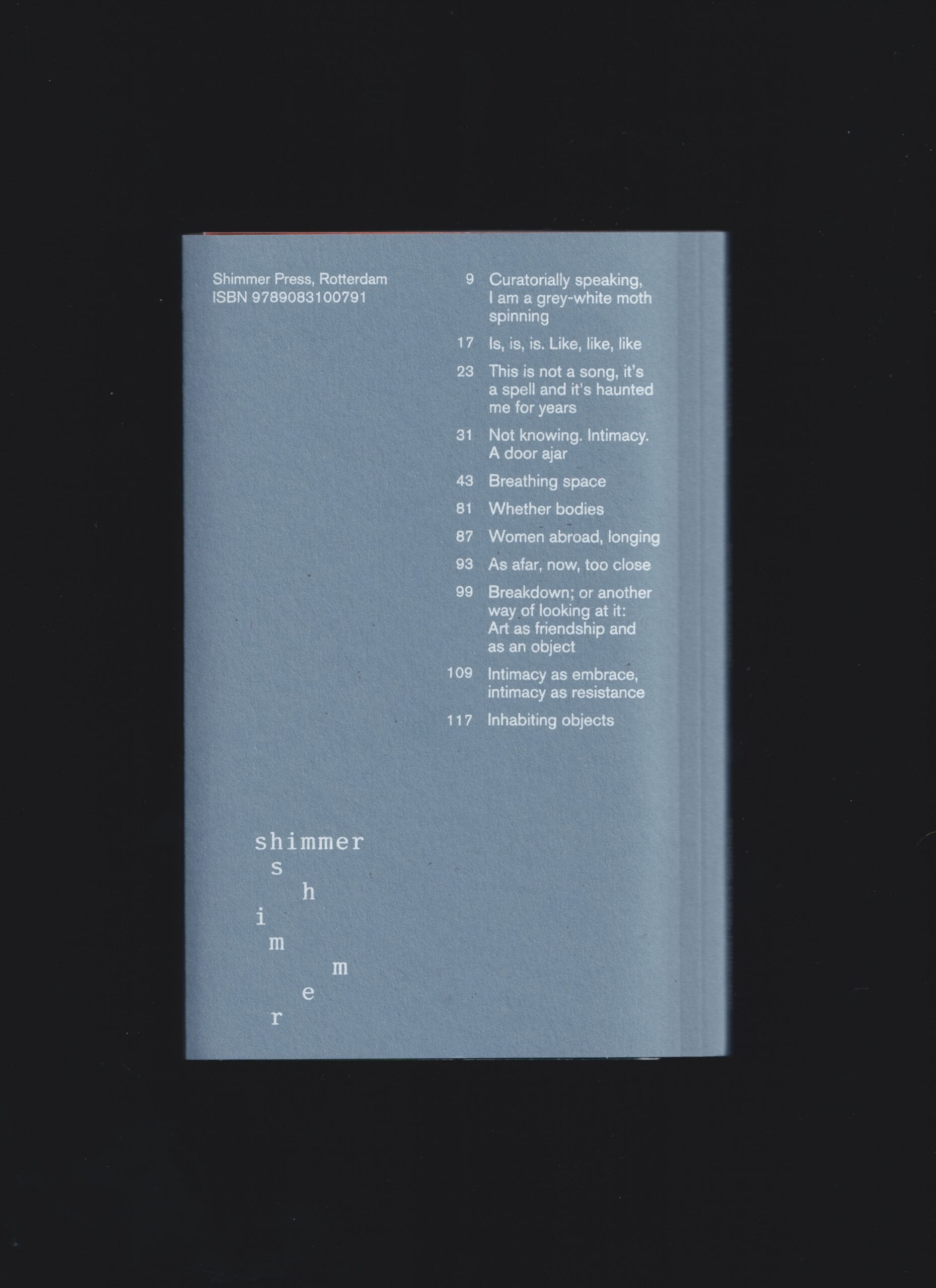 Curatorial Feelings is designed by Dongyoung Lee and published by Shimmer Press, Rotterdam. The publication is supported by LAPS, Amsterdam, The Netherlands; Gerrit Rietveld Academie, Amsterdam, The Netherlands; Droom en Daad, Rotterdam, The Netherlands; Stichting Stokroos, Utrecht, The Netherlands; Mondriaan Fonds, Amsterdam, The Netherlands.