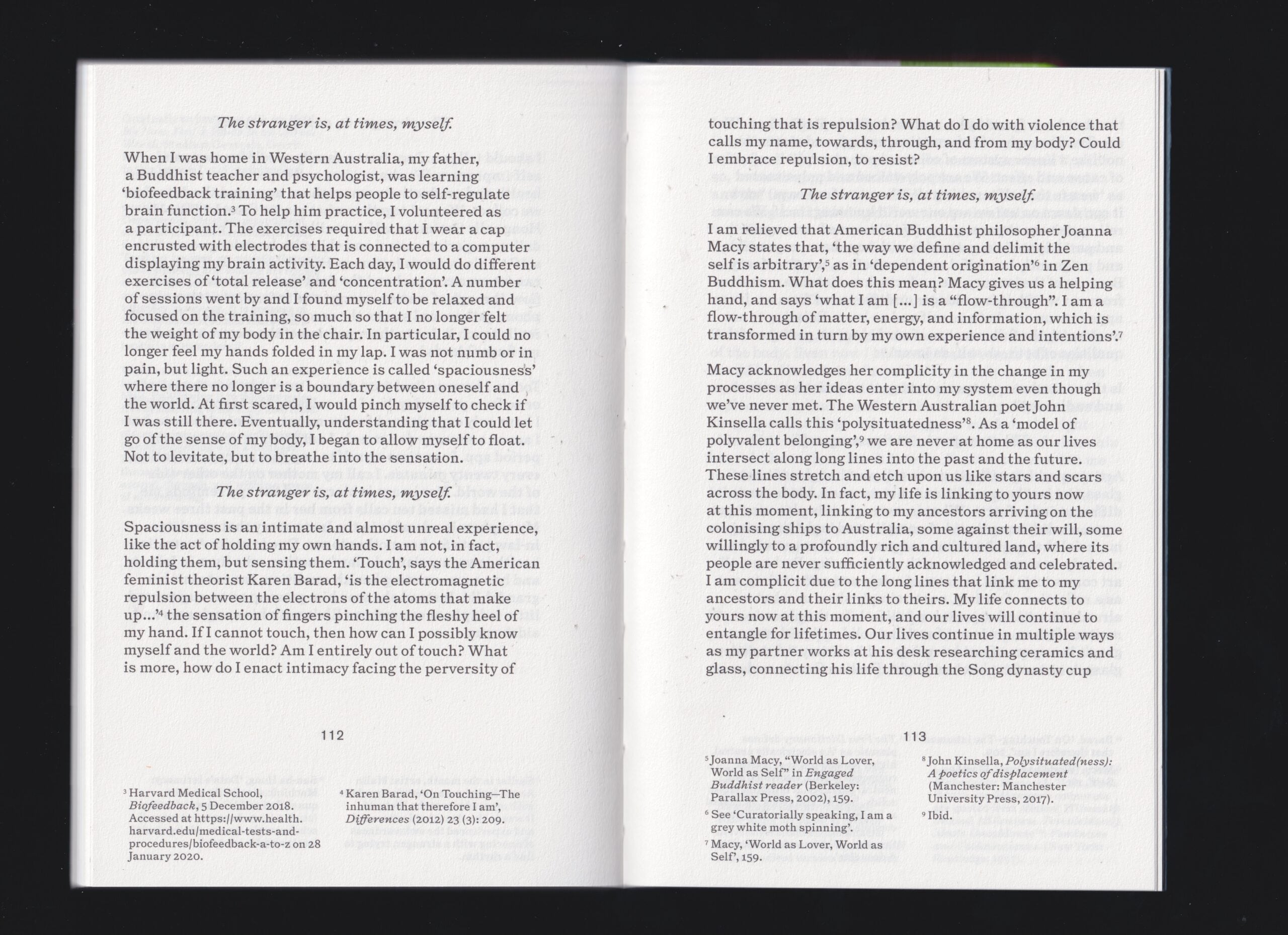 Curatorial Feelings is a book that collects arts practitioner Eloise Sweetman’s writing from the past decade—written on the occasion of exhibitions she curated, written on and for individual artworks, as well as for public talks. Sweetman often wrote while, and not before, the artworks were on view. The time of retrospection, and of being with artworks, imbues her language. Moving between prose and poetry, impressions and reflections, coursing through the writing is a commitment to senses, to subjectivity, to social responsibility.